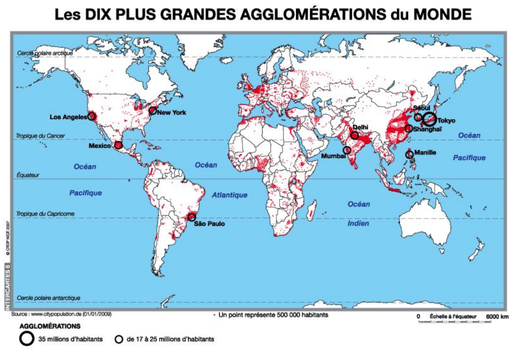 Habiter une métropole 14 décembre 2016 Laisser un commentaire Carte des dix plus grandes métropoles du monde Marqué avec 6e, géographie 6eme Géographie Habiter une métropole Les métropoles et leurs habitants
