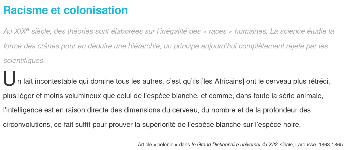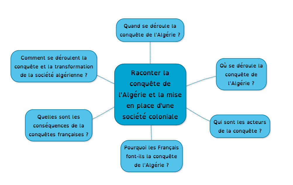 En 1830, une expédition militaire ordonnée par le roi de France Charles X, prend Alger, alors province de l’Empire ottoman. Cette opération française marque le début de la colonisation de l’Algérie. En 1848, L’Algérie est annexée à la République française et divisée en trois départements. En 1871 l’armée française met fin à la résistance algérienne, met en valeur le territoire, bouleverse la vie des habitants qui sont maintenus dans un statut d’infériorité par rapport aux colons. Comment et pourquoi la France fait-elle la conquête de l’Algérie ? Quelle société met-elle en place ?