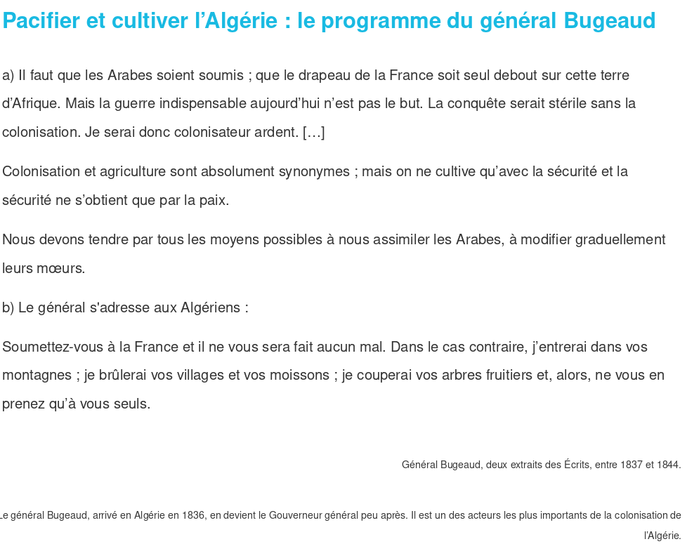 À partir des documents proposés et des 3QOCP, réalise un poster sur la conquête de l’Algérie.