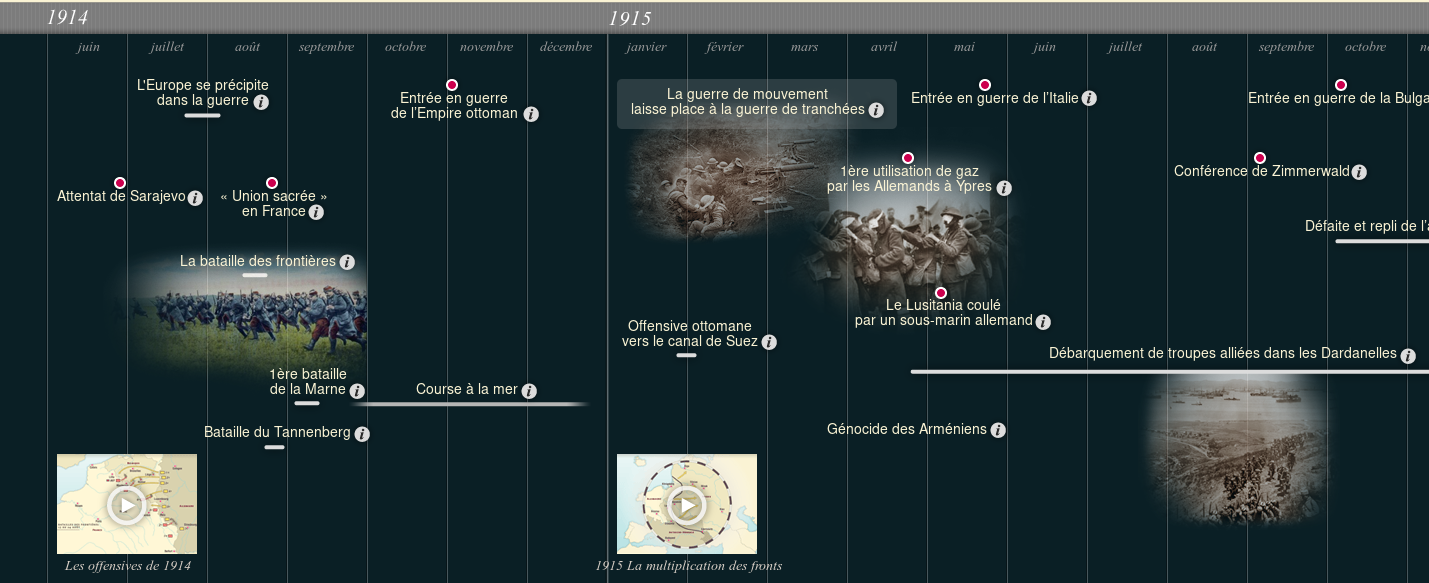 Une frise chronologique interactive sur la Première Guerre mondiale.